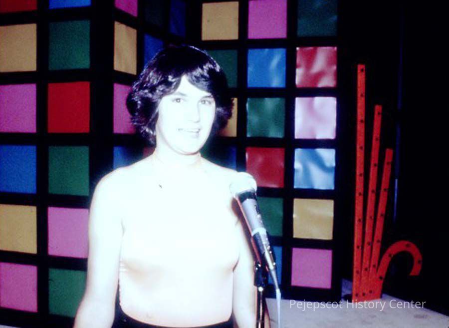 A 35 mm slide of a contestant in the 1979 Miss Teen Queen Pageant. It is marked "Jul 79" and "5". Sponsored by Christian Youth Organization (CYO).