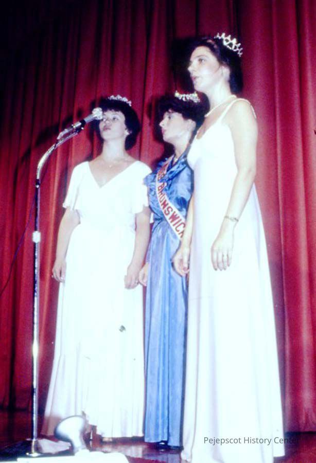 A 35 mm color slide of three winners in the 1984 Miss Teen Queen Pageant. The slide is marked, "Jul 84" and "16".