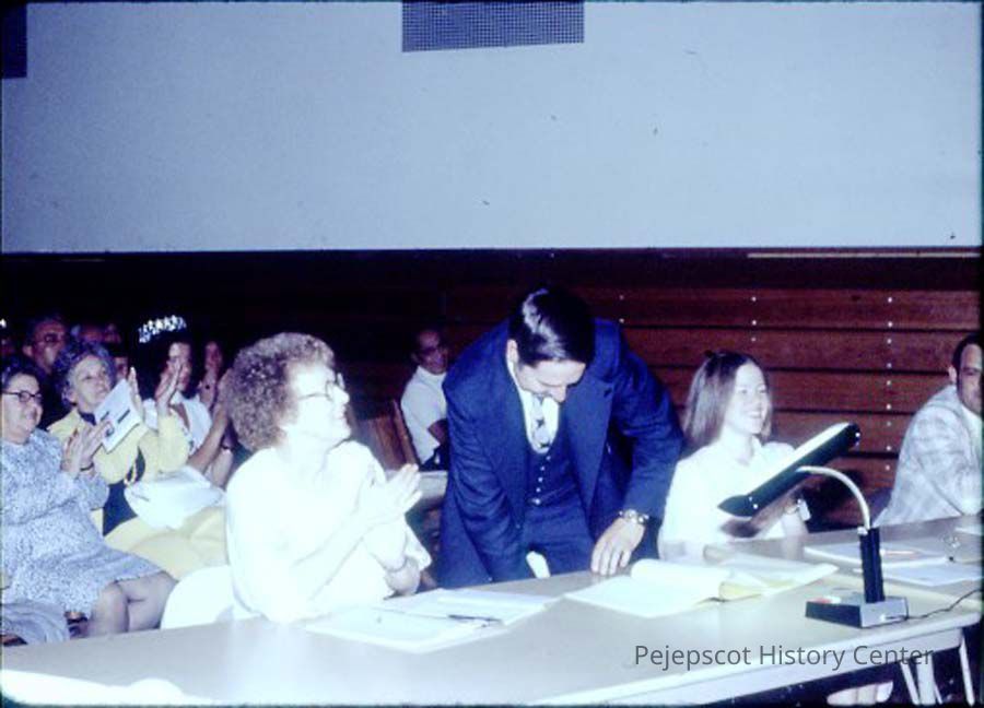 A 35 mm slide of the judges in the 1979 Miss Teen Queen Pageant. It is marked "Jul 79" and "16". Sponsored by Christian Youth Organization (CYO).