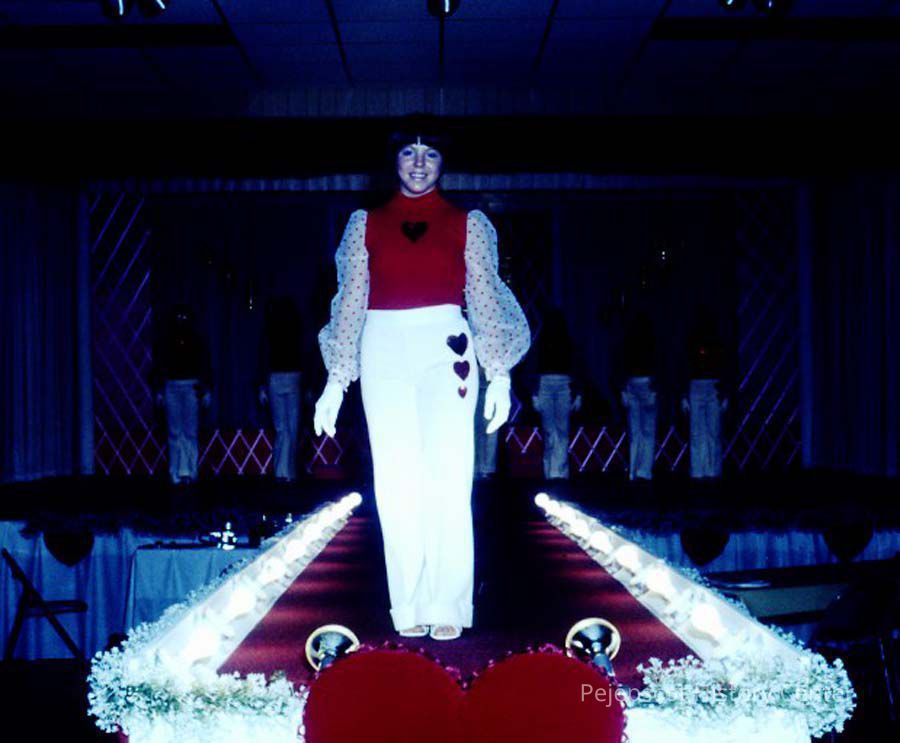 A 35 mm color slide of a contestant in the 1974 Miss Teen Queen Pageant. The slide is marked, "Jul 74" and "16".