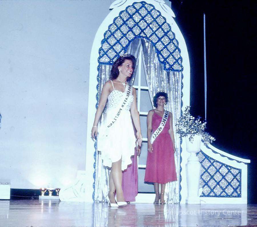 A 35 mm color slide of a contestant in the 1983 Miss Teen Queen Pageant. The slide is marked, "Jul 83" and "13".
