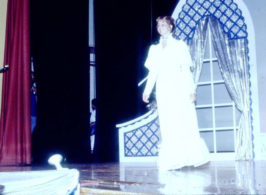A 35 mm color slide of a contestant in the 1983 Miss Teen Queen Pageant. The slide is marked, "Jul 83", "24" and "S-82"