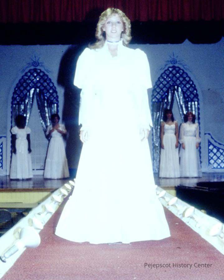 A 35 mm color slide of a contestant in the 1983 Miss Teen Queen Pageant. The slide is marked, "Jul 83" and "36"