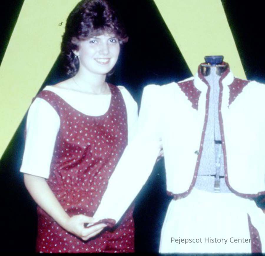 A 35 mm color slide of a contestant in the 1984 Miss Teen Queen Pageant. The slide is marked, "Jul 84" and "7".