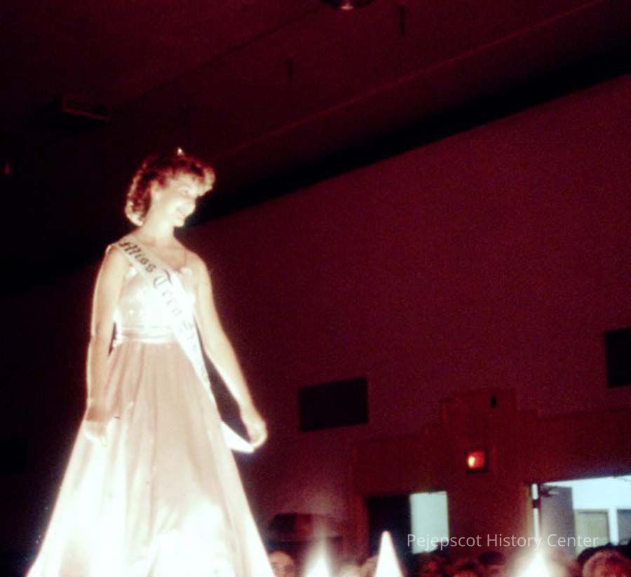 A 35 mm color slide of a contestant in the 1986 Miss Teen Queen Pageant. The slide is marked, "Jun 86" and "11".