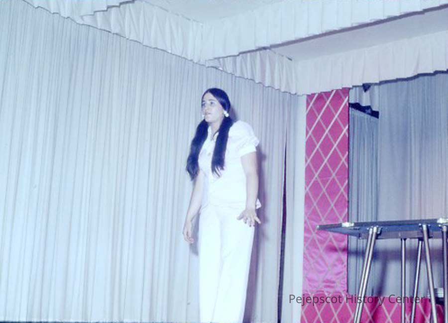 A 35 mm slide of a contestant in the 1974 Miss Teen Queen Pageant. It is marked "Jul 74" and "8". Sponsored by Christian Youth Organization (CYO).