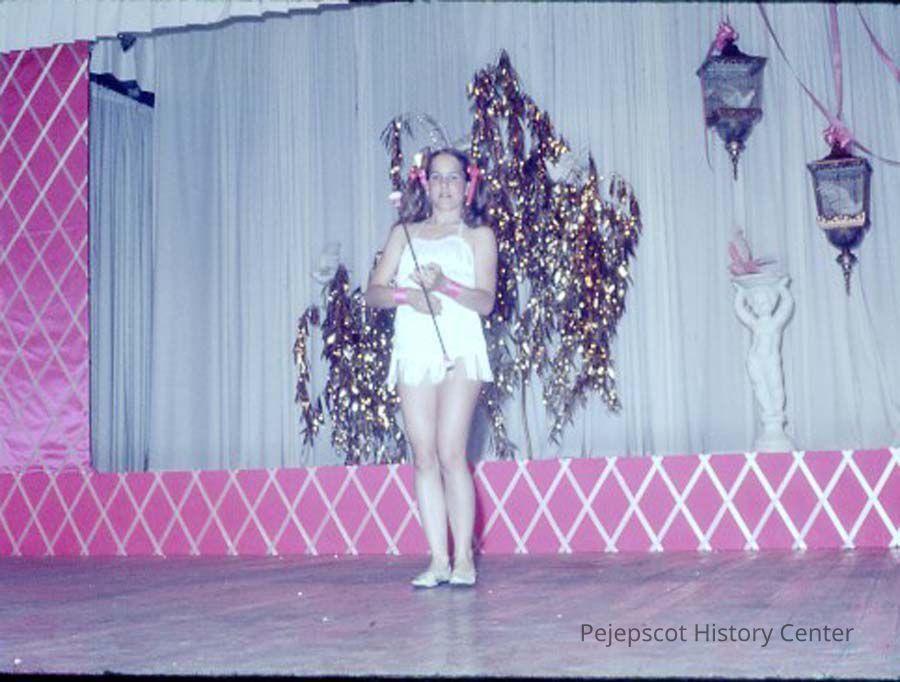 A 35 mm slide of a contestant in the 1974 Miss Teen Queen Pageant. It is marked "Jul 74" and "12". Sponsored by Christian Youth Organization (CYO).