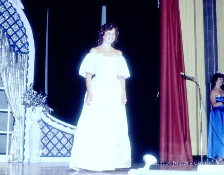 A 35 mm color slide of a contestant in the 1983 Miss Teen Queen Pageant. The slide is marked, "Jul 83", "35" and "S100".