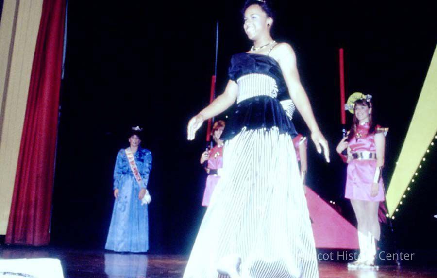 A 35 mm color slide of a contestant in the 1984 Miss Teen Queen Pageant. The slide is marked, "Jul 84" and "9". Also "5"on the front.