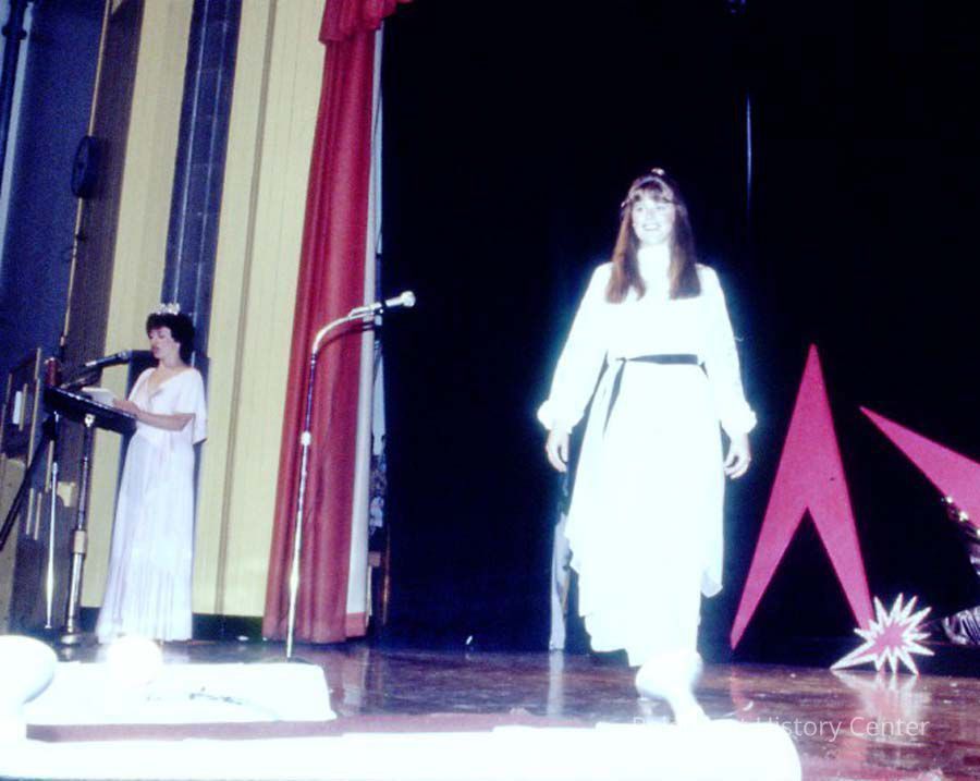 A 35 mm color slide of a contestant in the 1984 Miss Teen Queen Pageant. The slide is marked, "Jul 84" and "26".