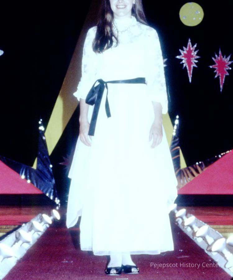 A 35 mm color slide of a contestant in the 1984 Miss Teen Queen Pageant. The slide is marked, "Jul 84" and "19".