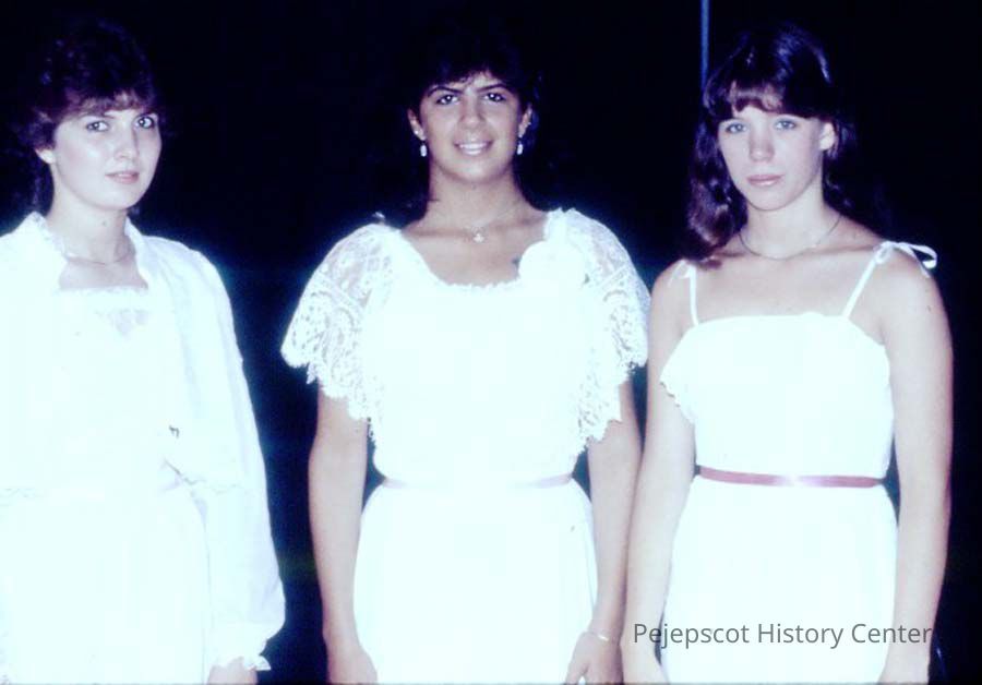 A 35 mm color slide of three contestants in the 1984 Miss Teen Queen Pageant. The slide is marked, "Jul 84" and "3".