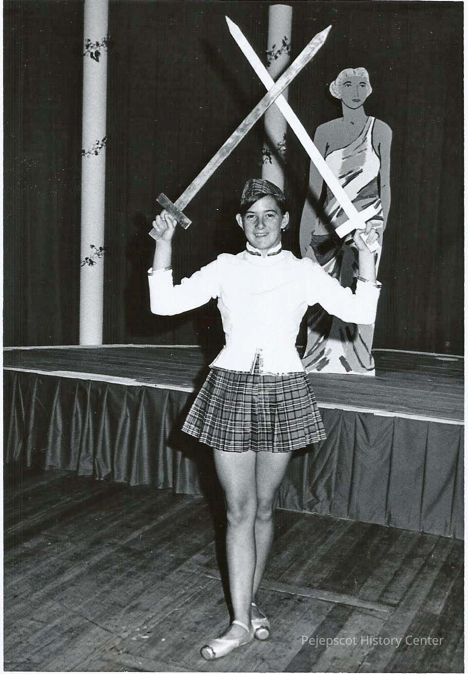 A B/W photograph of an unknown woman holding two swords.