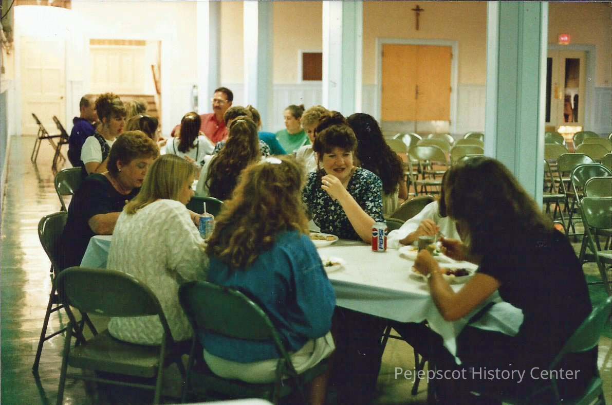 A color photograph of girls eating at a table. Photographer's # 2-16 CYO sponsored