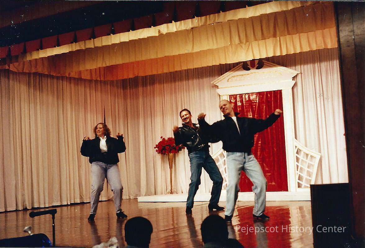 A color photograph of 3 people dancing on stage. Photographer's # 4-37 CYO sponsored