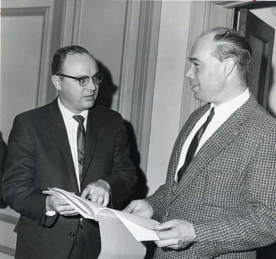 An undated black and white photograph an unknown man and Arthur Tainter (right), a Bath, Maine, police officer from 1952-1963, director of the Bath Recreation Department from 1963-1977, and sheriff of Sagadahoc County from 1977 to 1988.Collection