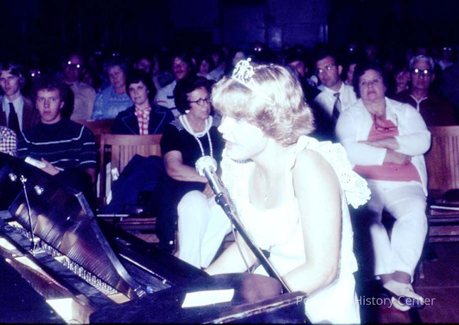 A 35 mm color slide of a contestant in the Miss Teen Queen Pageant. The slide is marked, "16" and "Jul 77."