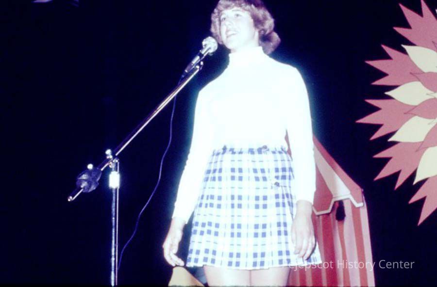 A 35 mm color slide of a Miss Teen Queen Pageant contestant. The slide is marked, "4" and "Jul 77."