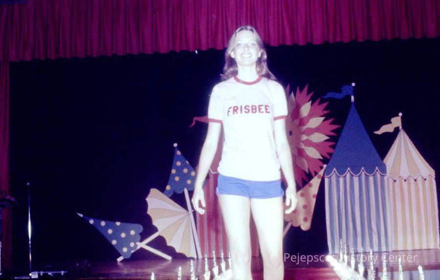 A 35 mm color slide of a contestant of the Miss Teen Queen Pageant. The slide is marked, "7" and "Jul 77."