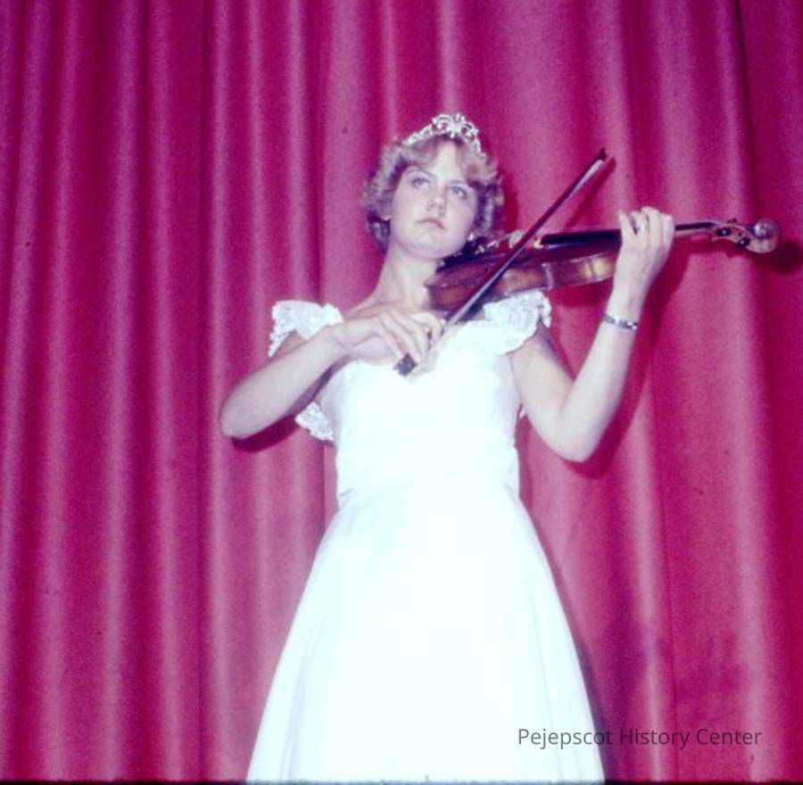 A 35 mm color slide of a contestant in the 1977 Miss Teen Queen Pageant. The slide is marked, "Jul 77" and "9."