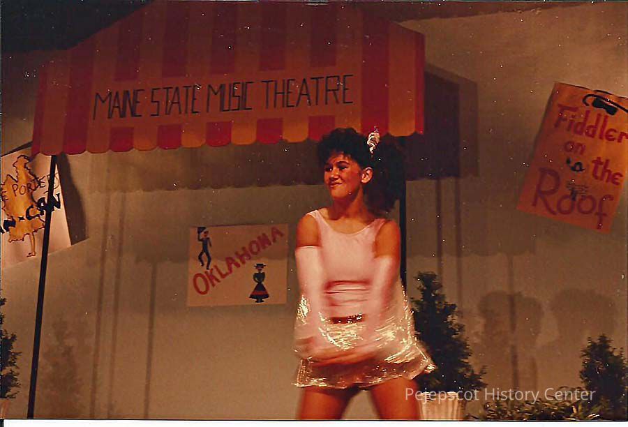 A color picture of an girl performing. Written on the back, "2-22."