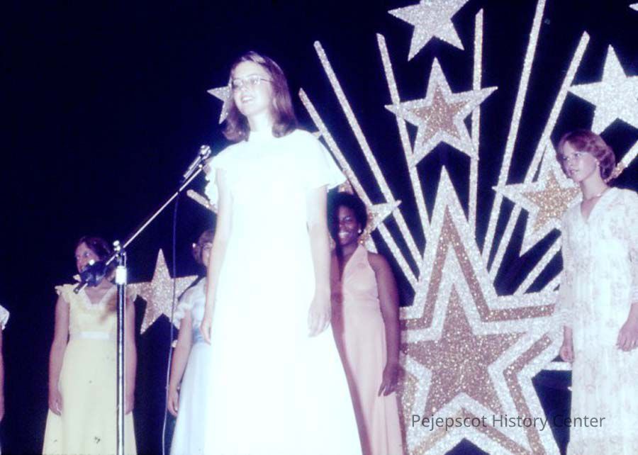 A 35 mm color slide of a few contestants in the 1977 Miss Teen Queen Pageant. The slide is marked, "Jul 77" and "2."