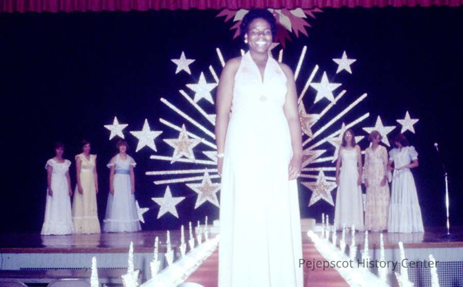 A 35 mm color slide of a few contestants in the 1977 Miss Teen Queen Pageant. The slide is marked, "Jul 77" and "13."