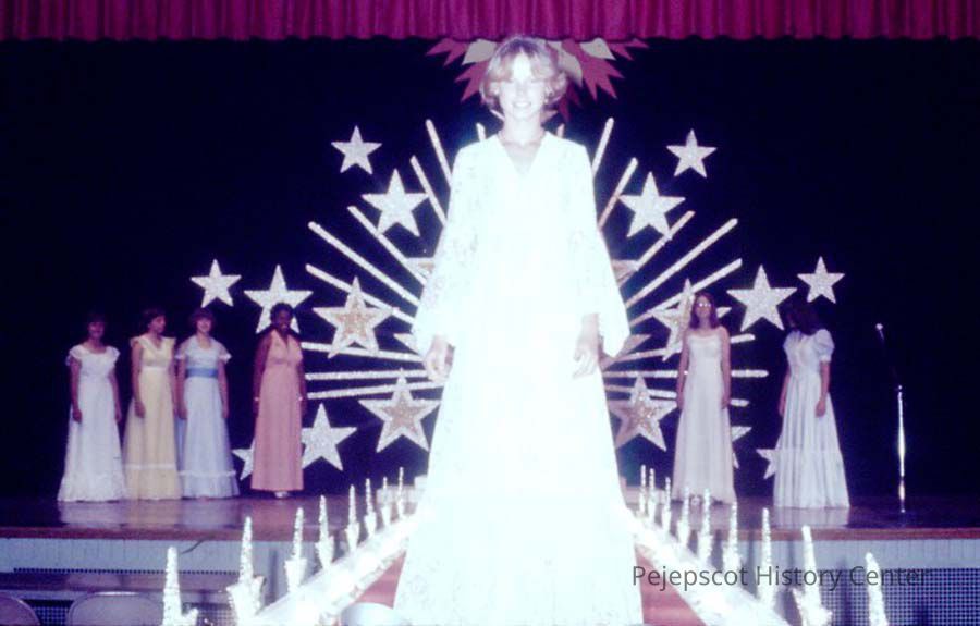 A 35 mm color slide of a contestant in the 1977 Miss Teen Queen Pageant. The slide is marked, "Jul 77" and "15."