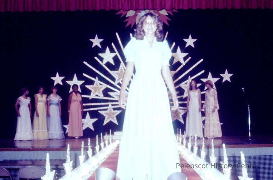 A 35 mm color slide of a few contestants in the 1977 Miss Teen Queen Pageant. The slide is marked, "Jul 77" and "16."