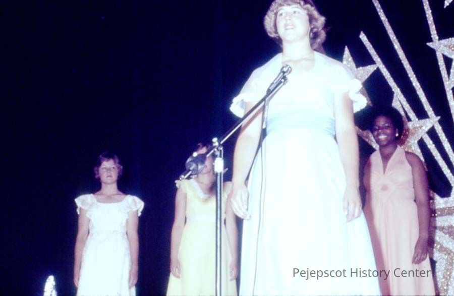 A 35 mm color slide of a few contestants in the 1977 Miss Teen Queen Pageant. The slide is marked, "Jul 77" and "19."