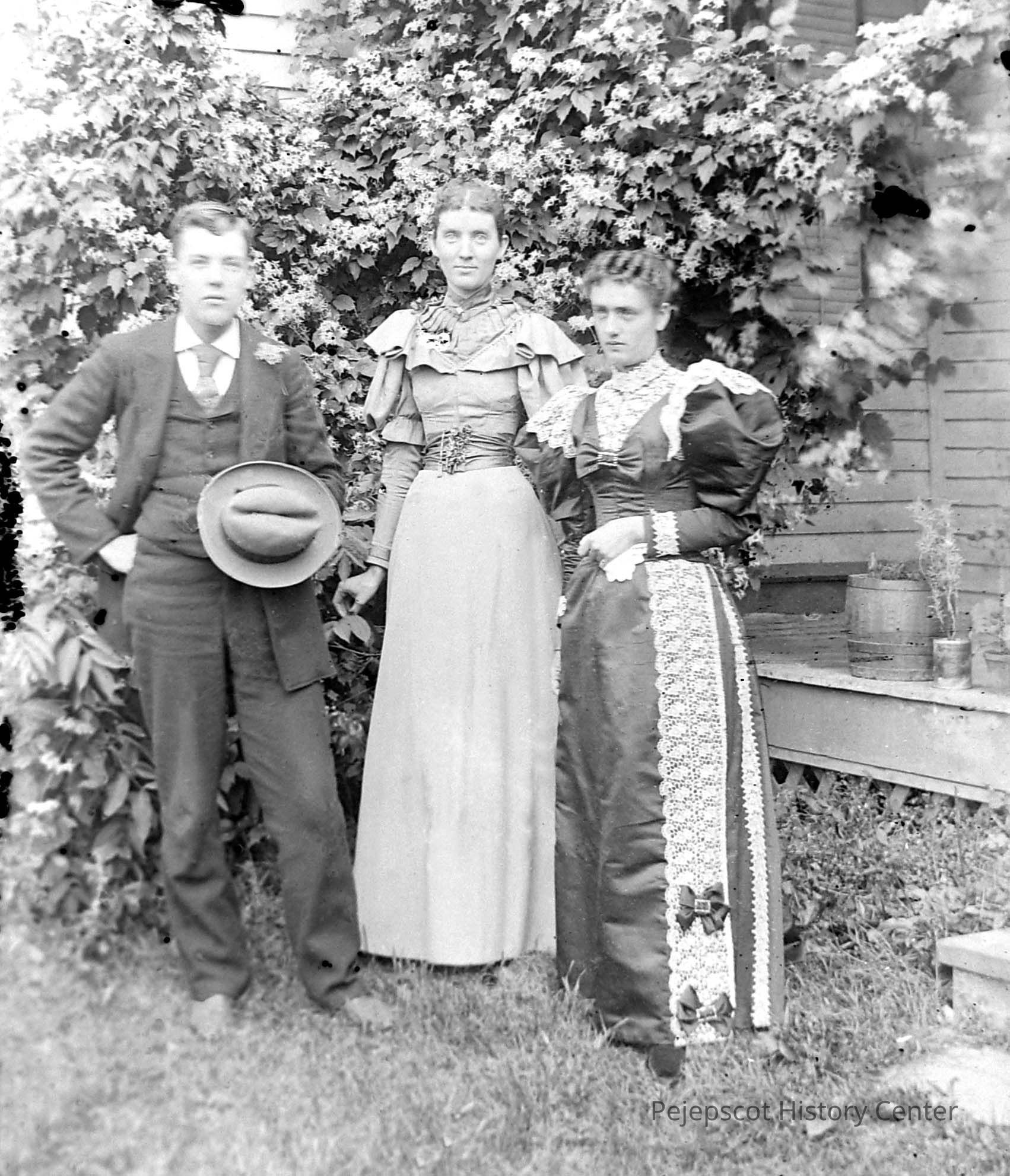 A glass plate negative with a photograph of an unknown group consisting of two women and a man. "CD-R "Glass Negatives #2 #44" Undated.