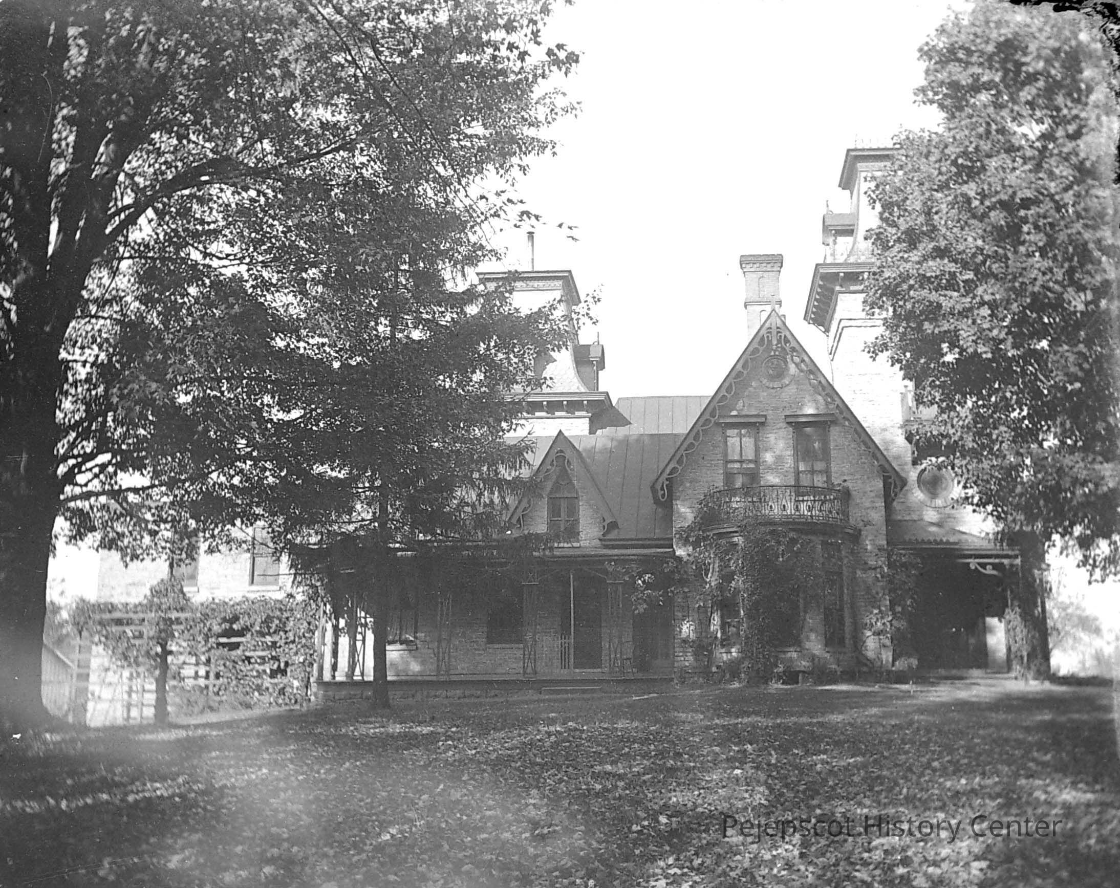 A glass plate negative with a photograph of an unknown house in the woods. "CD-R "Glass Negs 2" #More Glass 018 Undated.