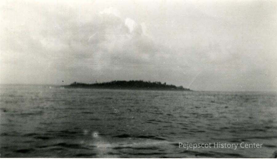 A black and white photo of an unidentified island (South Harpswell, Maine). Summer, 1948