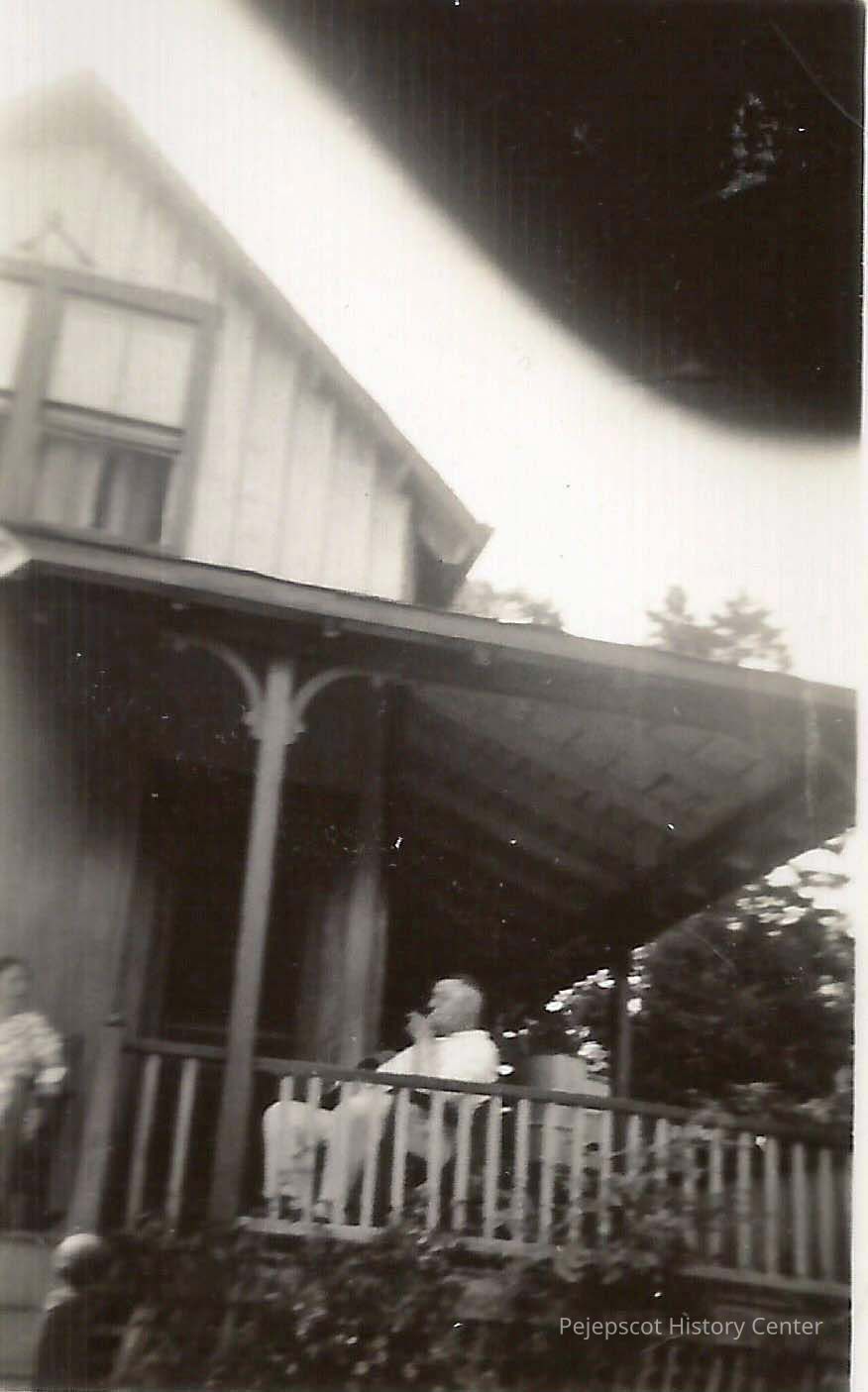 A color photograph of an unknown man and woman sitting on a porch. Undated