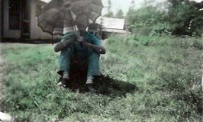A color photograph of an unknown man sitting on a lawn. Undated