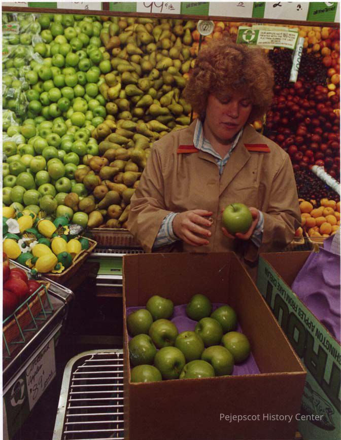 A color photograph of an unknown woman in the produce section of a grocery store was published in The Times Record in Brunswick, Maine, on 1/14/1988.