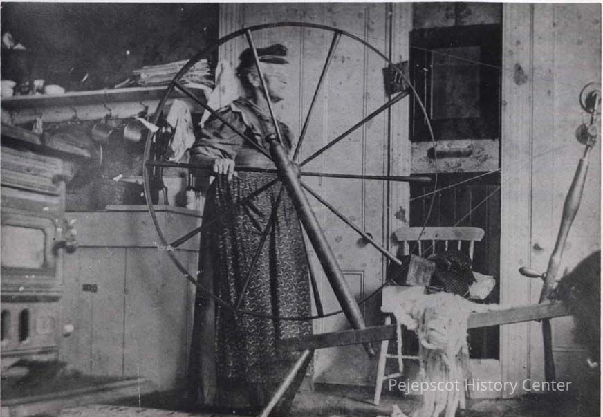Unknown woman and spinning wheel