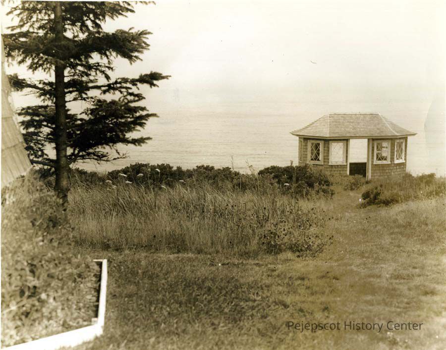 A B/W photograph of an unusual building on Bailey Island - East Shore. Undated