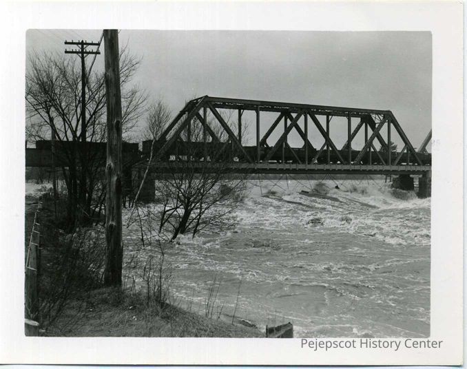 Upper Railroad Bridge and Free Bridge, 1936 Flood, Brunswick.