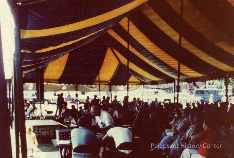 A color photograph of a tent set up for the US Bicentennial celebration, Brunswick, Maine. 7/4/1976.