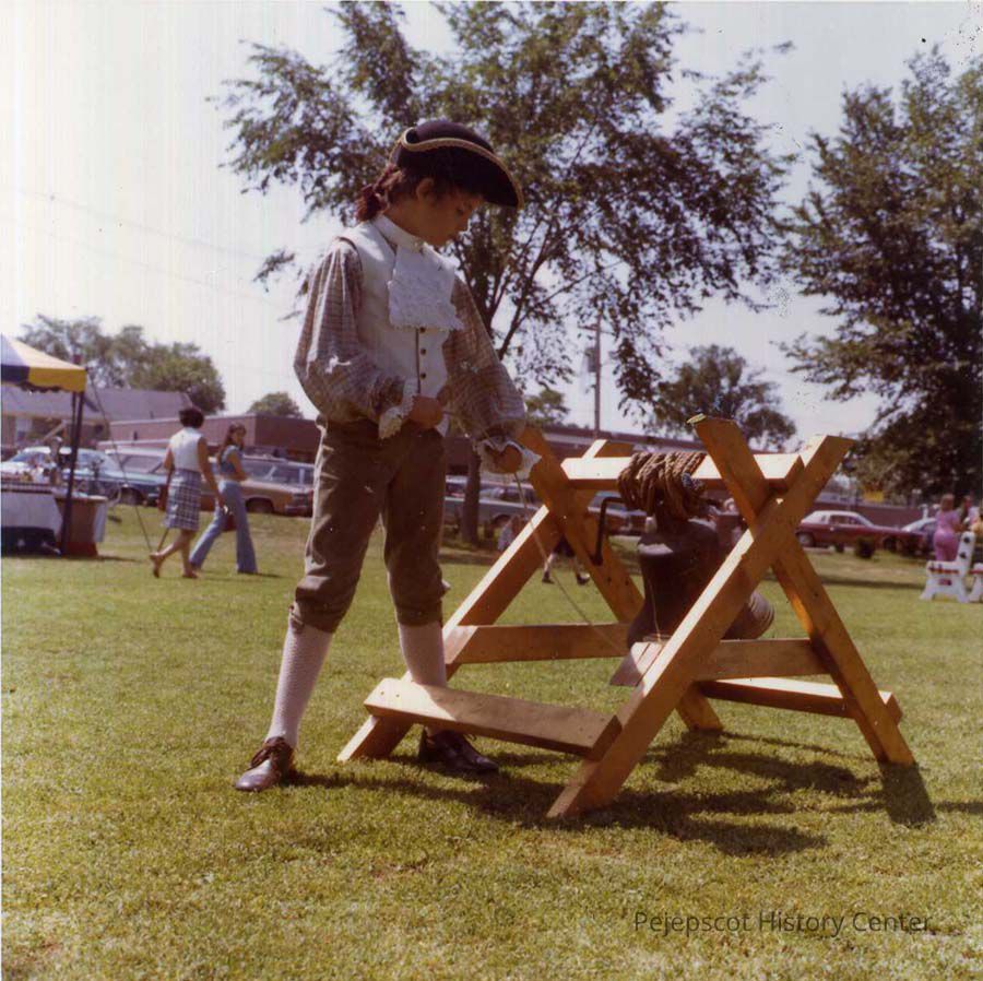 A color photograph of demonstrations on the Mall as part of the US Bicentennial celebration, Brunswick, Maine. 7/4/1976.