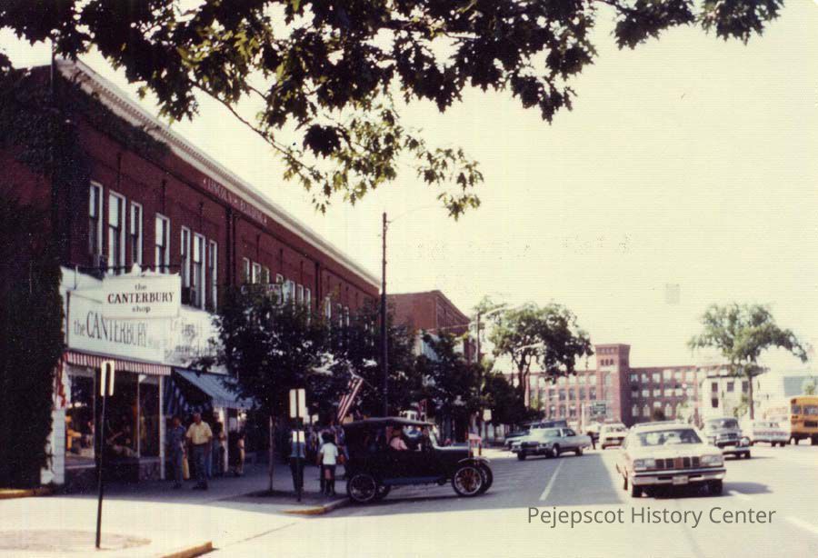 A color photograph of Maine Street, Brunswick, Maine during the US Bicentennial celebration. 7/4/1976.