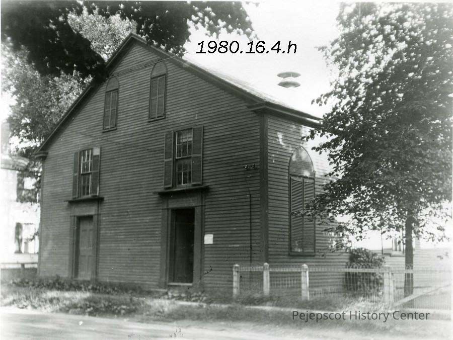 A B/W photograph of Varney Hall with a chimney stack. This was the location of Pejepscot Historical Society from 1892 to the mid 1970s.