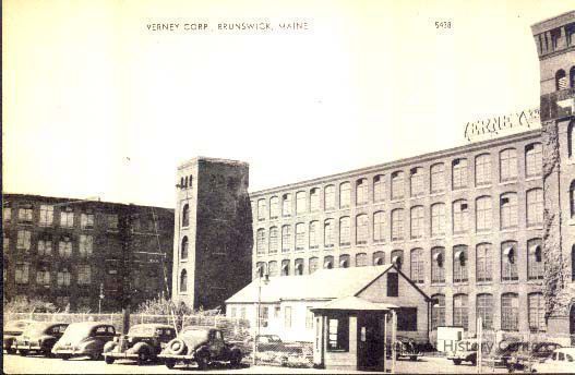 An undated black and white postcard of the Verney Corp. Mill, Brunswick, Maine. It was a textile mill.Collection