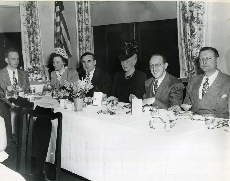A B/W photograph of Verney folks at a banquet table. Only Blackie Lachance and Mr. Verney are identified. Undated