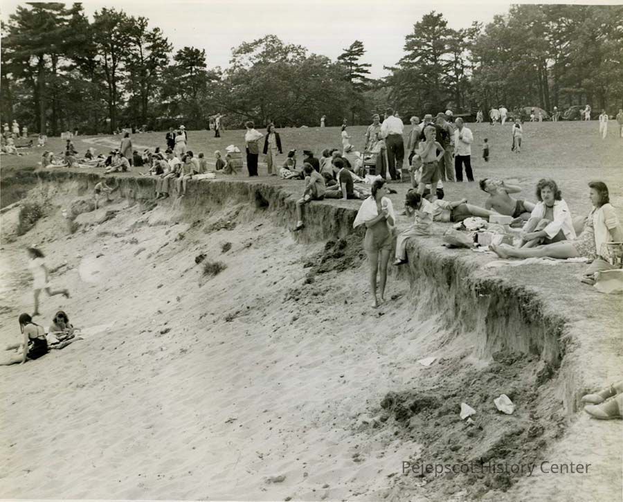 A B/W photograph of the Verney Mill employee picnic at Thomas Point Beach. Undated