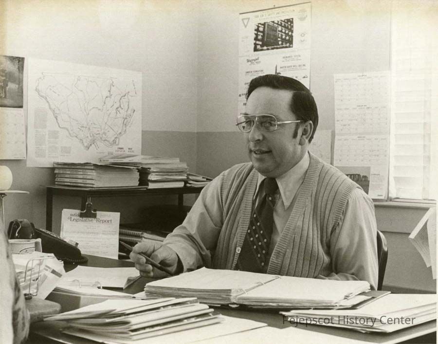 An black and white photograph of Topsham Selectman Victor Ponziani is similar to one published in The Times Record in Brunswick, Maine, on 12/19/1978.