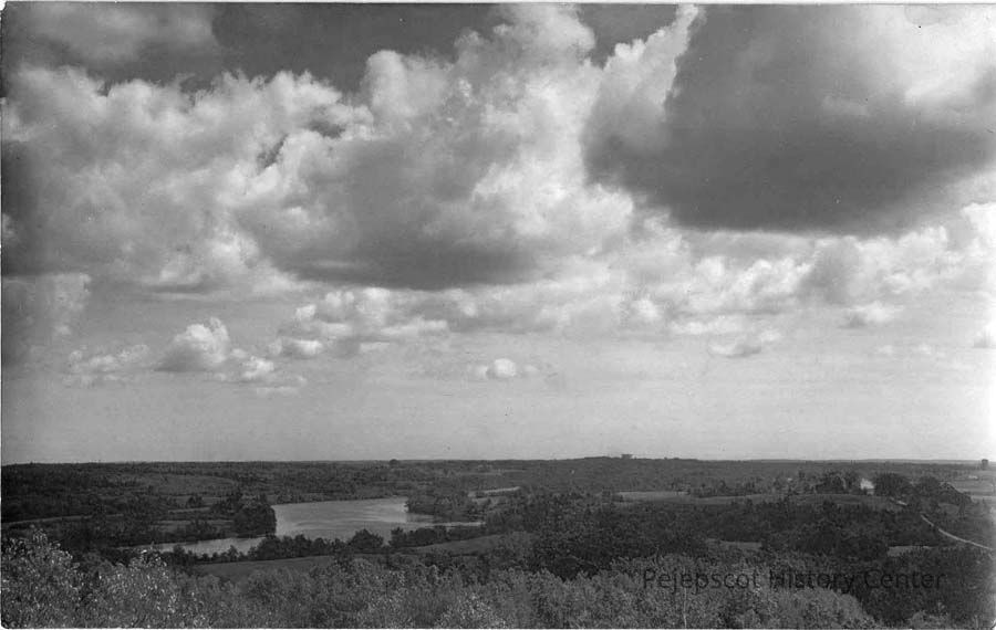 A B/W picture postcard view of Brunswick/Topsham (ME) area from Rocky Hill. Undated.