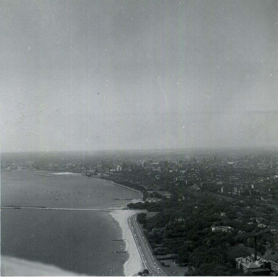 A B/W photograph of the shore line taken from a Blue Angel's plane. Undated