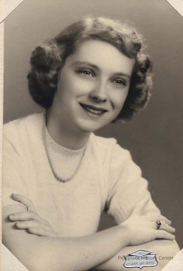 A B/W graduation photograph of Vivian Michaud, Brunswick High School Class of 1951. She gave the photo to Stella Purinton. Undated